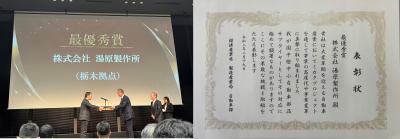 この度、弊社は2月19日に開催された「ミカタプロジェクト モビリティ イノベーションフォーラム」において、経済産業省より「自社の成長に向けたチャレンジに積極的に取組まれたサプライヤー」に対し表彰される部門で「最優秀賞」を授与頂きました。現在開発中の「熱マネジメントパネル」の商品化を目指し、引き続き鋭意努力継続すると共に、ミカタプロジェクトを通じ御指導頂いた専門家の方々、栃木拠点のスタッフの皆様に心より御礼申し上げます。